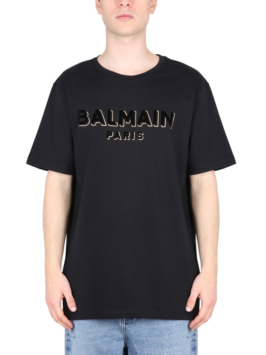 Scarpe / Italia / BALMAIN T-SHIRT IN COTONE CON LOGO FLOCCATO E METALLIZZATO moda