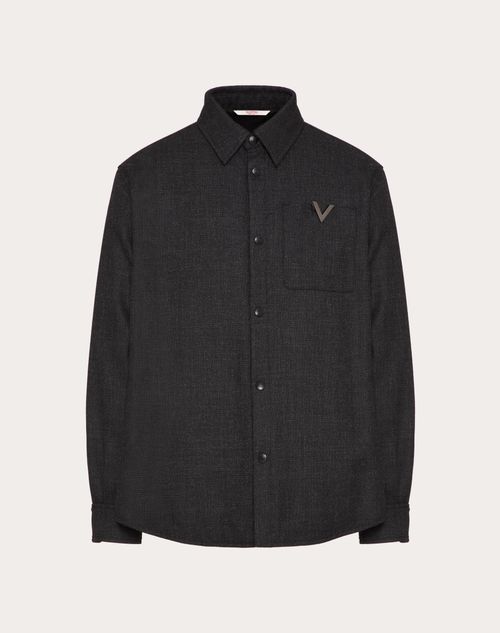 Giacca camicia Valentino in tweed di lana con V Detail metallica- Over fit- Modello foderato- Modello leggermente imbottito - V Detail metallica applicata su tasca sul petto- Chiusura con bottoni- Due tasche a filetto laterali- Una tasca sul petto lato sinistro indossato- Composizione: 100% Lana Vergine- Composizione fodera: 100% Cupro- Composizione imbottitura: 100% Poliestere- Lunghezza: 75 cm dall'attaccatura posteriore del collo in taglia 46 IT- Il modello è alto 187 cm e indossa una taglia 46 IT- Made in ItalyIl look è completato con scarpe Valentino Garavani VLogo Easyjog.